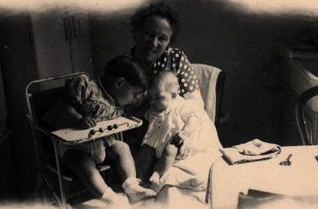 "Cherbourg 29 mai 1958 ; Mamé Morin et ses petits enfants ; didier 19 mois ; Brigitte 4 mois"